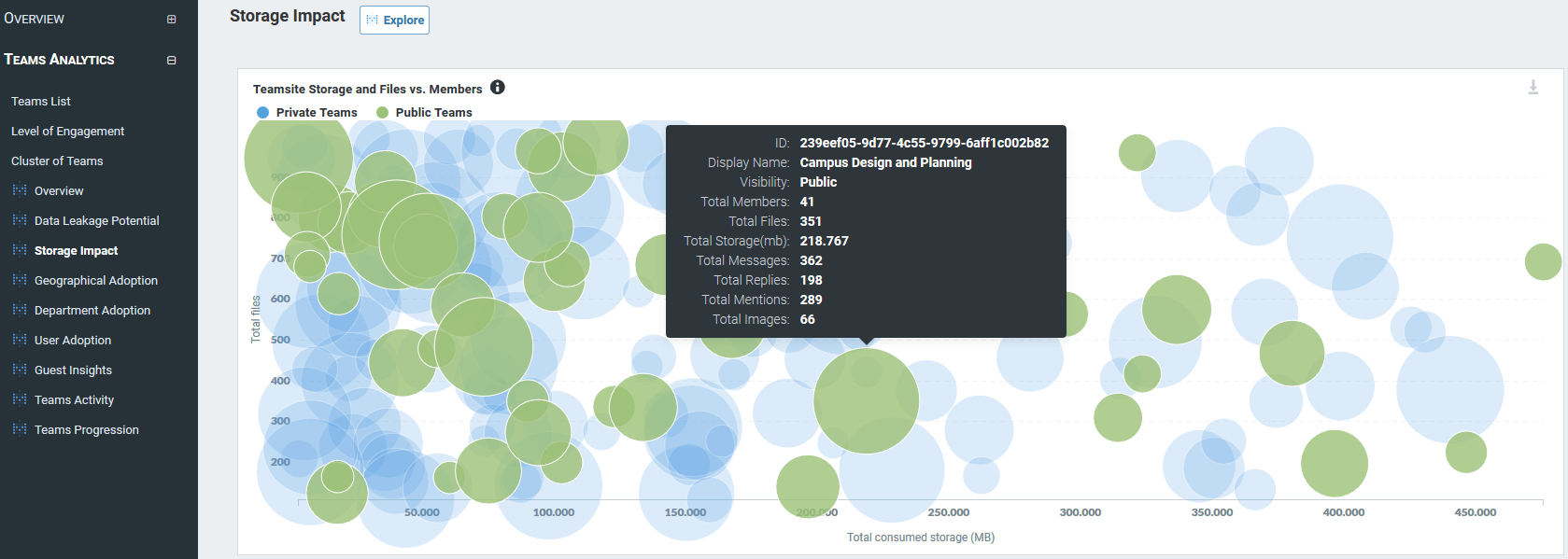 - Administrators can benefit from operational details such as orphaned teams or Team Site storage quota information details to proactively ensure an efficient, healthy and clean operating environment.