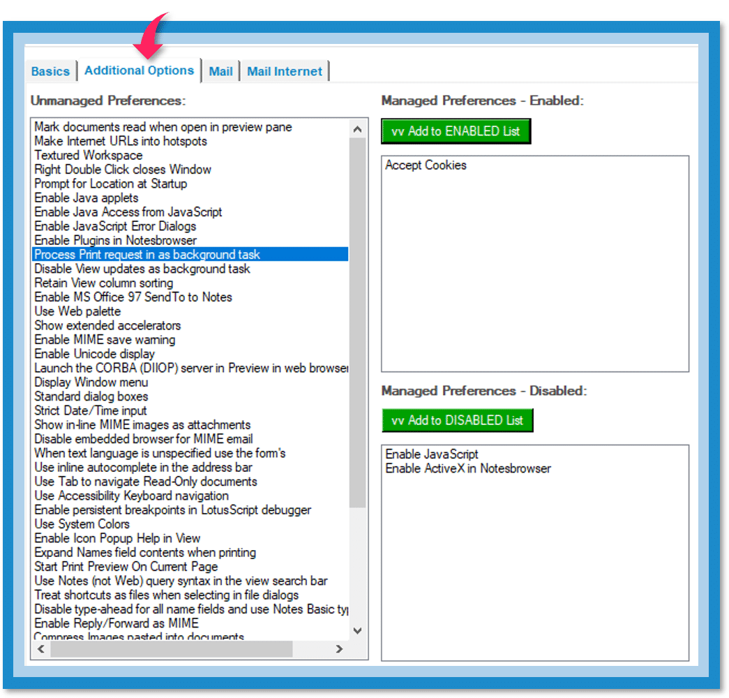 Under Additional Options, you have access to an extensive list of preferences you can enable or disable.