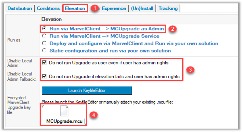 We select this option and the “Disable Local Admin” and “Disable Local Admin Fallback” to ensure that the Upgrade will only be done with the provided user in the .mcu file.