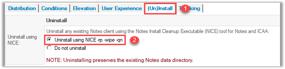 - Whether the current client will be uninstalled before the new installation gets executed,