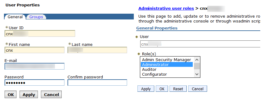 So you can use an already existing account (local or LDAP), or you create a local WebSphere Administrator Account.