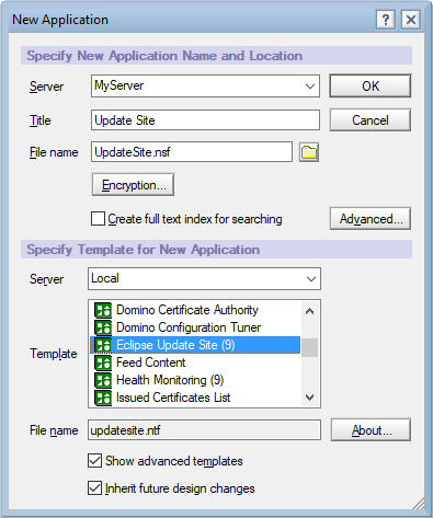 - NRPC URL, which can be used to access the Update Site database using the native Notes client protocol