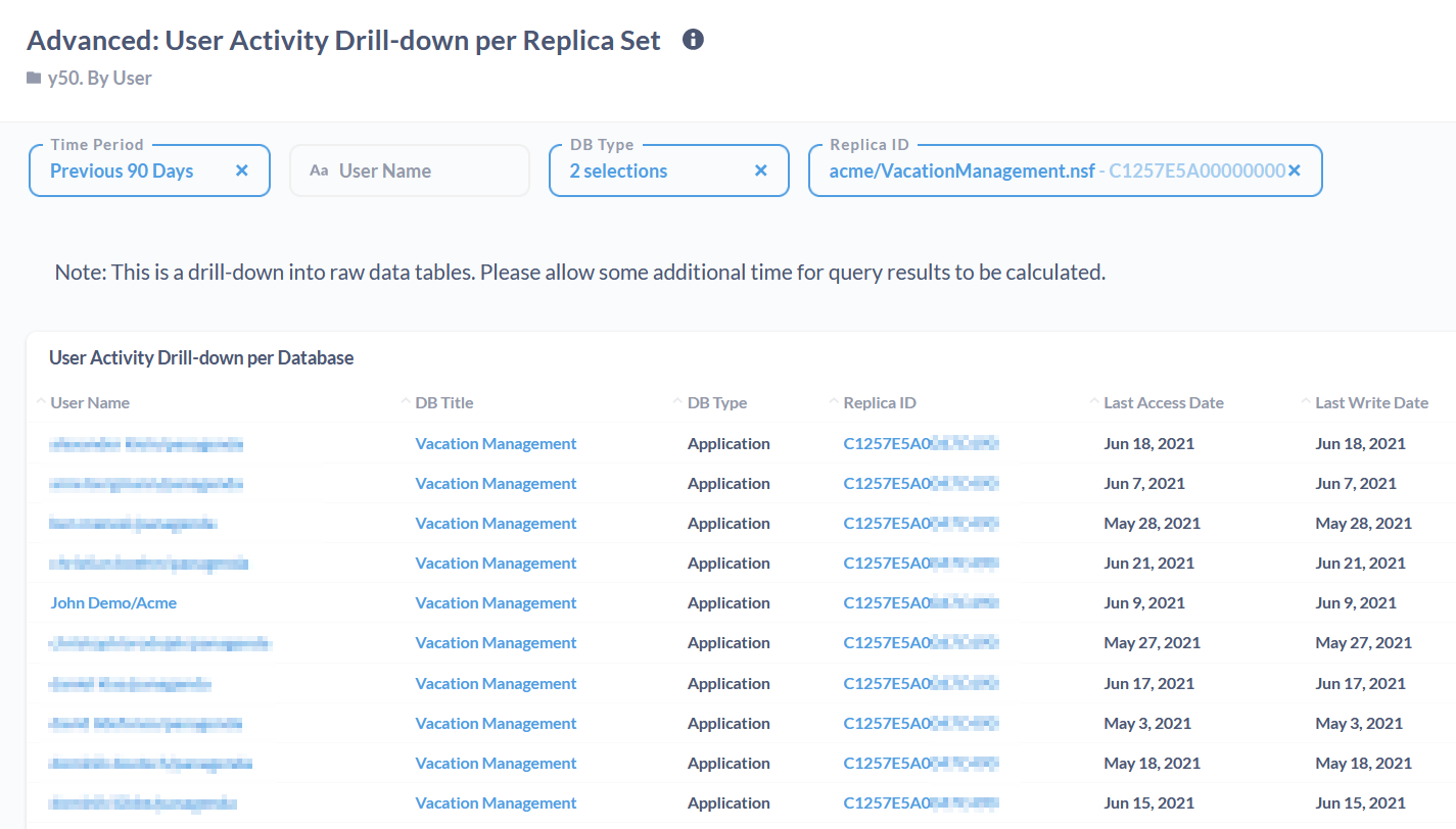 That is not all, however. The dashboard allows for the ability to drill through to the replica set level directly from within the table. This enables drilling down further into the follow-up question: "Who else used this database, and in which time period?".
