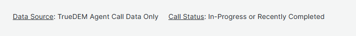 - TrueDEM Agent Call Data Only - Information shown is based on TrueDEM Agent data only