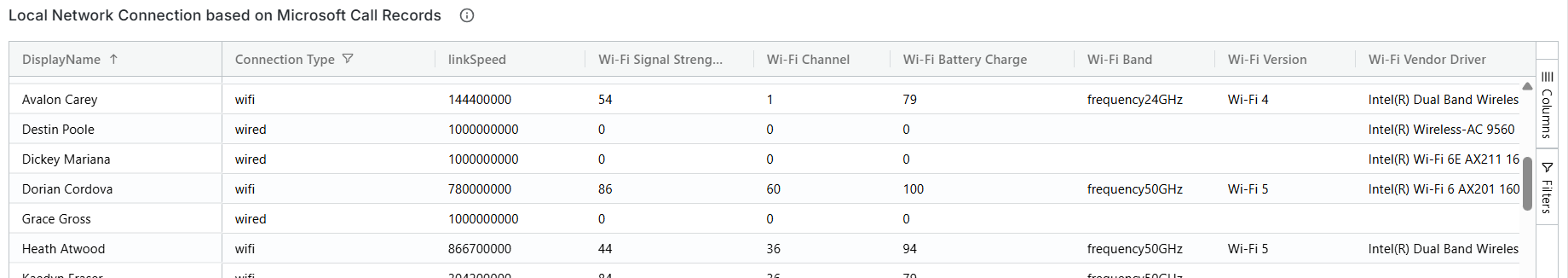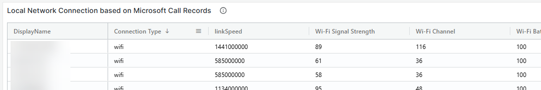 The Local Network Connection information is derived from Microsoft Call Records.
