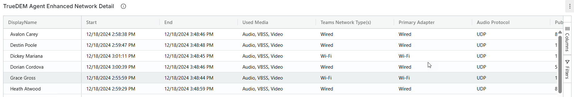 This data represents TrueDEM Agent data. A user may appear multiple times if they have utilized multiple sessions.