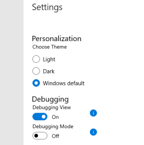 - Click on Settings and enable the Debugging View (NOT the Debugging Mode!)
