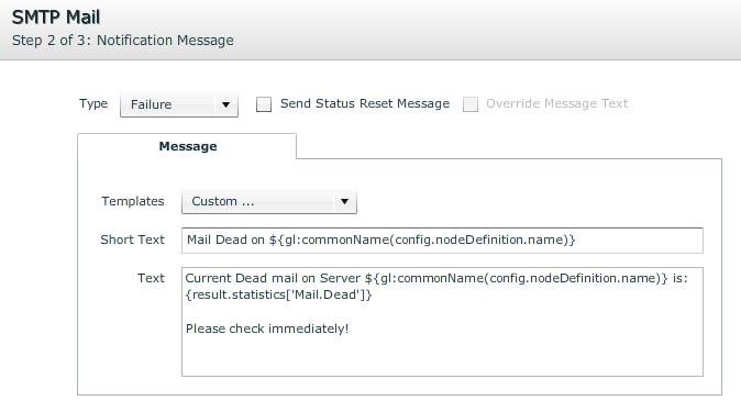 The aim of this configuration is, to restart the router task whenever a certain amount of dead e-mails has been reached (eg. after 3 measurement runs). If the situation does not improve (after restarting the router) one can trigger in addition a normal e-mail notification to the admin (e.g. triggerd after 5 measurements)