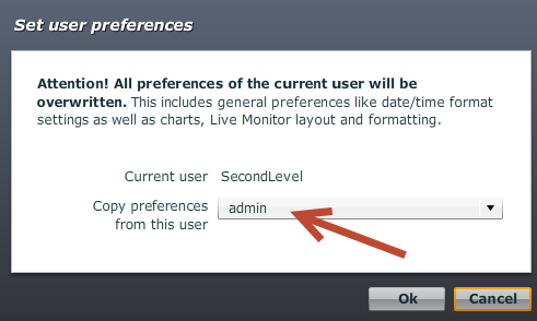 Whenever you create a new user account, you have the possibility to inherit the user preferences from an existing user. User preferences include for instance the configuration of the Health Grid, Health Monitor Dashboard as well Chart definitions (and many other settings).