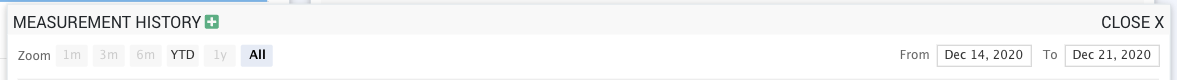 Based on these grids, you can create ad-hoc charts or you can create a chart and add it to the dashboard permanently. To do so right click on a measurement in the grid and select Add to Chart... from the context menu. An ad-hoc chart will be created which can then be added to the dashboard by clicking on the green + icon next to "MEASUREMENT HISTORY" in the popup header bar: