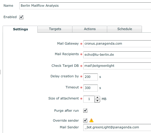 - As a check Target DB you need to specify the Database in which the e-mail will be delivered (see Mail Sender field)