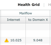 Above picture helps you to identify how long a mail took to AND from the Internet. The average is ~ 15secs. As you further can see, with measuring the mail flow you are able to see when and how long certain peaks appear during a day/week/month.