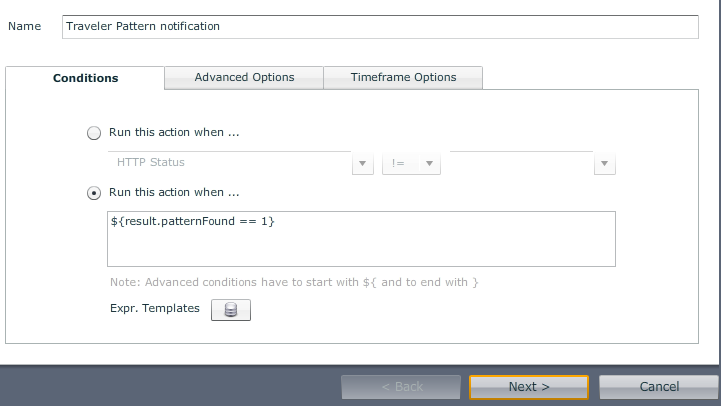 copy/paste Alerting: If the pattern is not found, then the Sametime login/authentication or even the application itself is not working fine --> ${result.patternFound != 1}