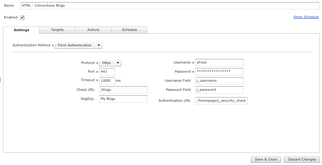 So the following examples should help you what type of settings you need to set in order to check certain systems via HTML User Simulations - Form Authentication.