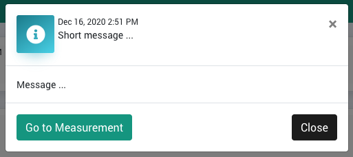 Clicking on a message opens a pop up with more details. Click on the Go to Measurement button in this pop up to open the respective measurement in the Sensor Overview: