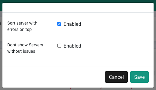 The Servername column can be filtered - clicking on the following icon opens the filter dialog (hover your mouse over the column heading to display the icon):