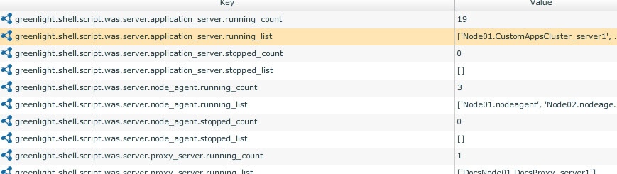 You are going to get for ANY installed application within the WAS Cell the Status (running, stopped, not available)