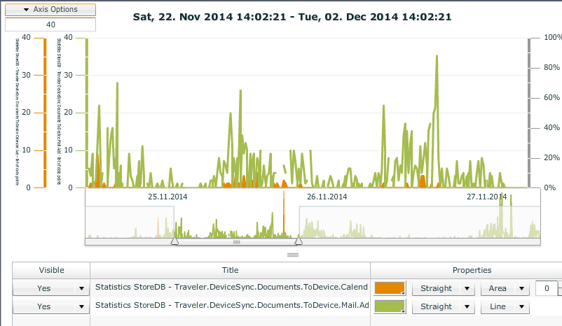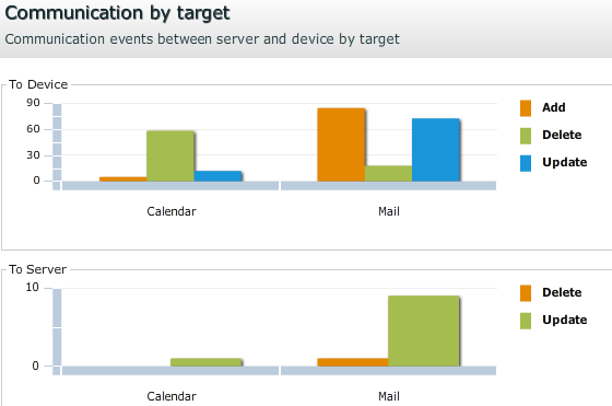 - Messages gives you an overview of how many messages have been sent/received via different types (Active Sync vs. HTTP)