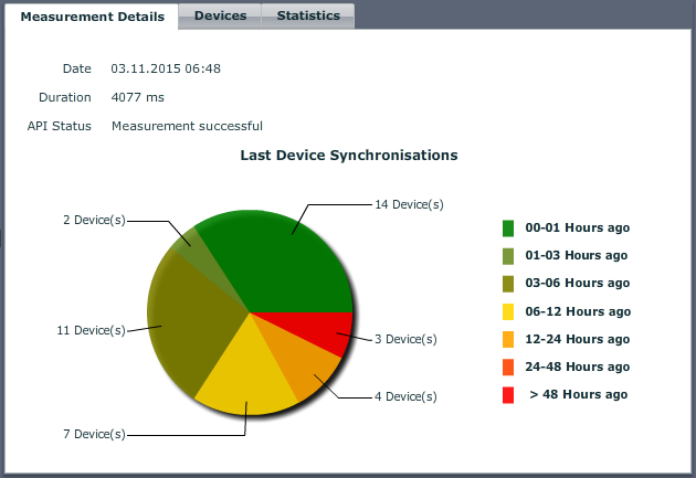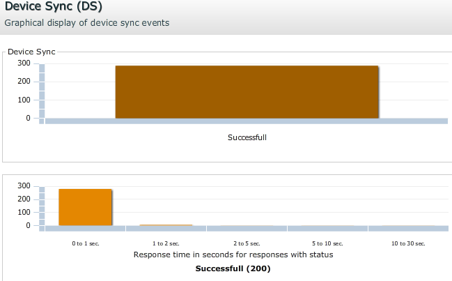 - Device Sync Events: shows you the histogram of successful sync's. In order to see the histogram underneath of the bar-chart, just click on “Click on a column in the chart….”