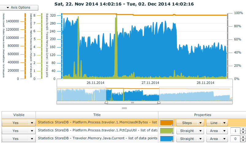 By using the powerful charting engine of GreenLight, you can generate whatever chart you want/wish. For instance: Line-charts to cover CPU utilization. Bar-charts to cover different Histograms of IBM Traveler
