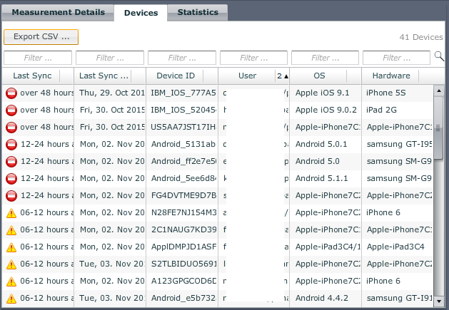 -On the Devices Tab you will find vital information about devices/users/sync state