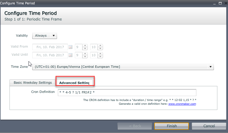 the following screenshot shows this configuration (Advanced Settings Tab)