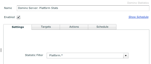 The plan for the following configuration is that we want to monitor the CPU percentage utilization specifically for the HTTP task. For this reason we plan to collect only Platform statistics with this Sensor. (Make sure that Platform statistics are active on the Domino server, otherwise you would not see any of those statistics)