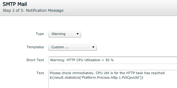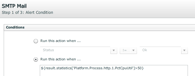 Specify the following condition: ${result.statistics['Platform.Process.http.1.PctCpuUtil']>50}