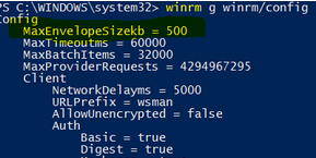 - MaxEnvelopeSizekb parameter on the server gives the size of Soap message that can be sent. Scripts or commands are sent within Soap messages. The config for a server: