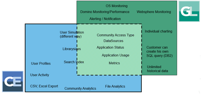 The following picture shows you where both solution overlap with each other and where each of the solution have unique selling points.