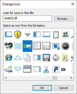 Icon number (from shell32.dll): The icon to display for the shortcut. The default 249 is selected in the following screenshot: