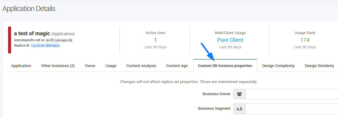 - Application Details → Custom DB Instance properties: open a single database via the Database Catalog