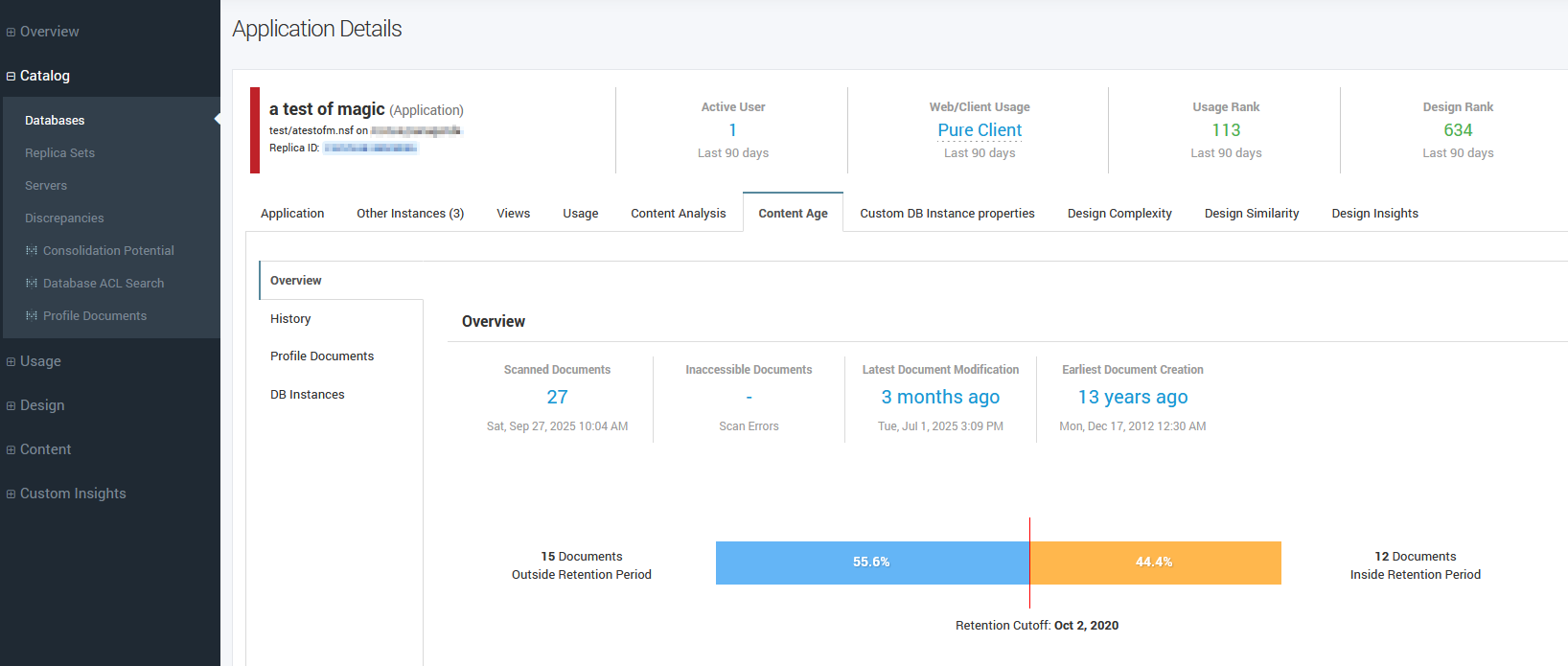 A new tab "Content Age" is available in Application Details for databases where content age data was collected.