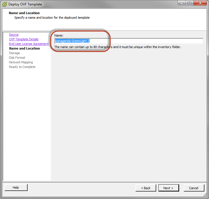 - Source: Specify the path to the GreenLight OVM file – for example: C:/Temp/GreenLight290.ova